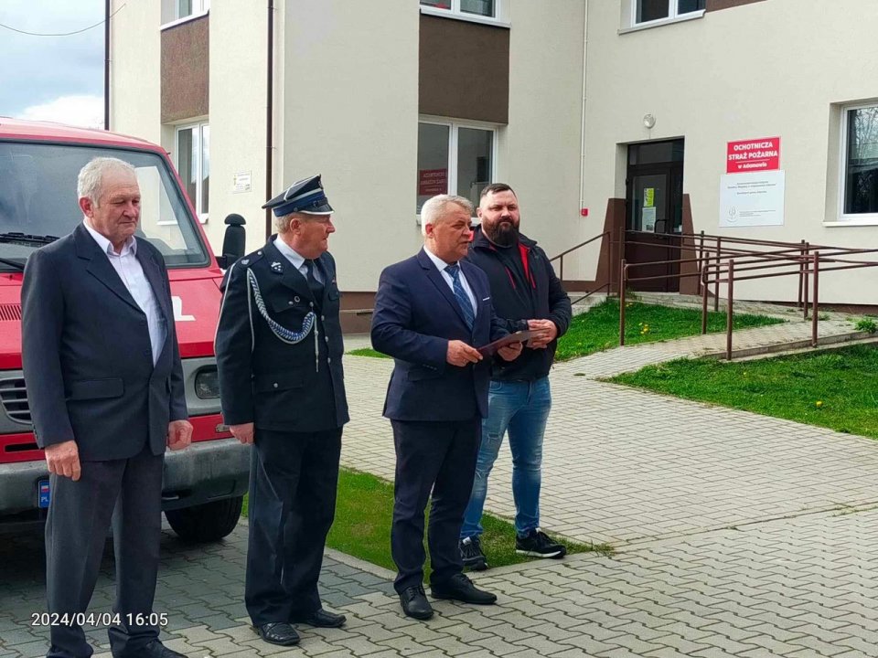 W czwartek 4 kwietnia 2024 r. na placu przy remizie Ochotniczej Straży Pożarnej w Adamowie miało miejsce przekazanie nowego samochodu marki FORD TRANSIT jednostce OSP Adamów.