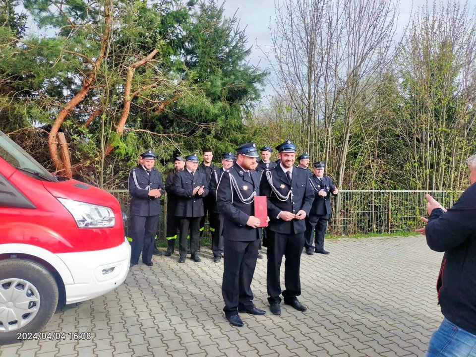 Gratulujemy strażakom nowego samochodu i życzymy dobrego i bezpiecznego użytkowania pojazdu.