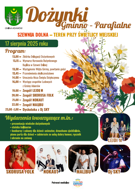 Zapraszamy na Dożynki Gminno-Parafialne w Szewni Dolnej, które odbędą się 17 sierpnia 2025 roku